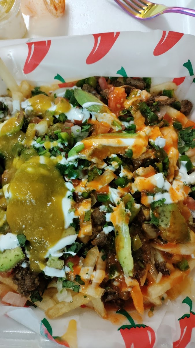 My boyfriend and I have become regulars of this place. Their food is soo good. I saw other reviews about checking your order before you leave, and yes only a few times did we have something small like a salsa missing, but if you go up to the window they are quick to correct their mistake. It only takes a few minutes to check your order before leaving!! I highly recommend their brisket tacos and asada fries with shredded cheese! Also I have a mild gluten intolerance and don’t have any issues with either of those things.