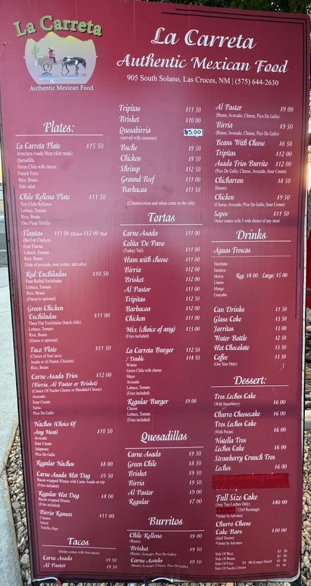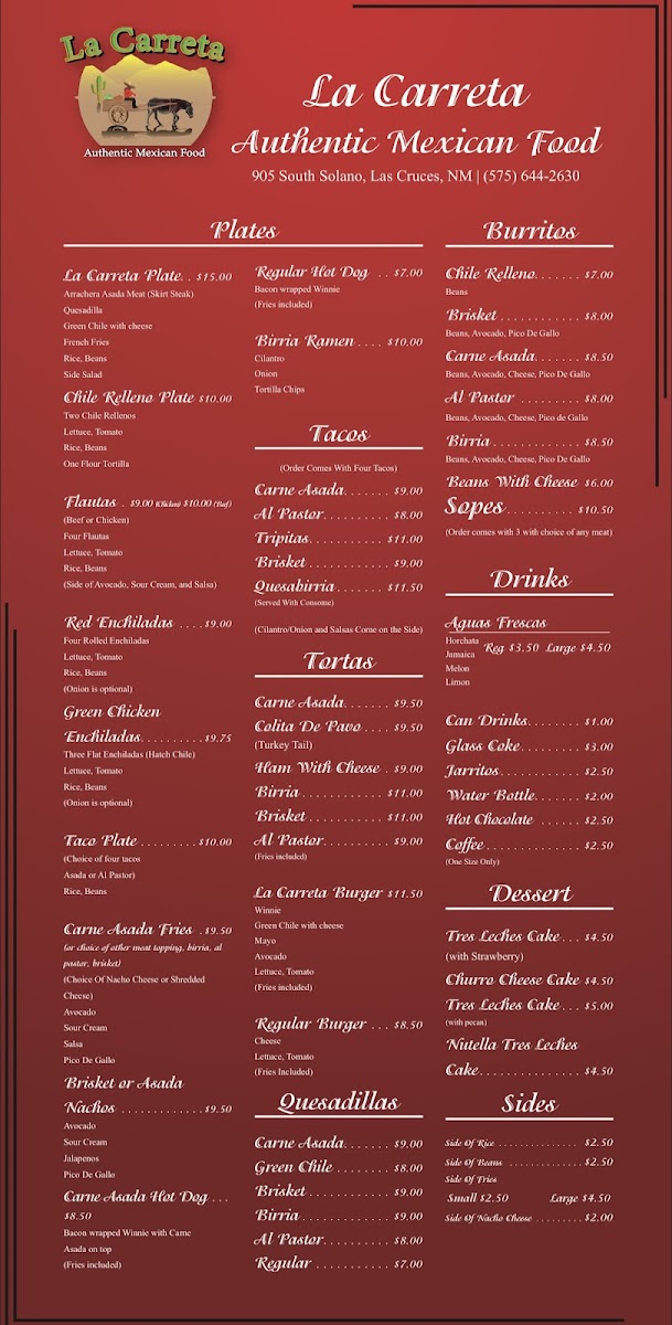 La Carreta Authentic Mexican Food Truck offers a menu that blends straightforward, satisfying Mexican favorites with casual, approachable flavors. The selection includes a variety of street-style tacos, hearty plates, and shareable bites designed for easy, relaxed dining no matter the time of day.